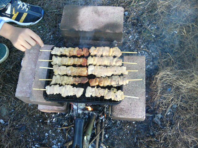 おつまみに焼き鳥も追加で~す。 花見に似た光景がいたる所に・・・